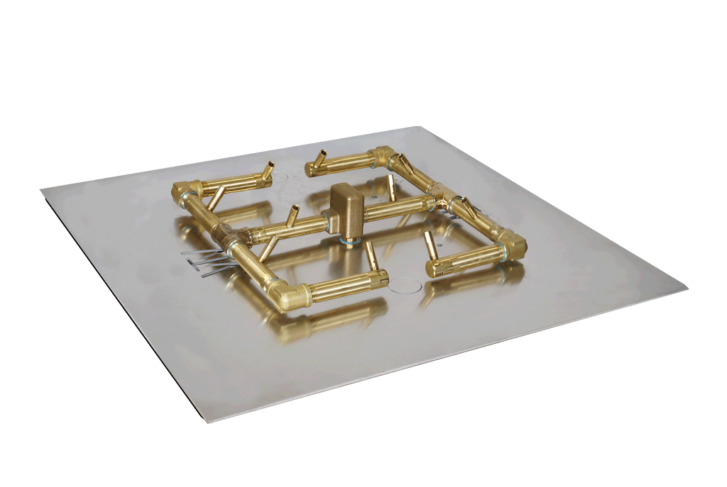 The Crossfire Brass Burner with Square Aluminum pan provide one of the most unique and innovative gas fire pit burner systems available.