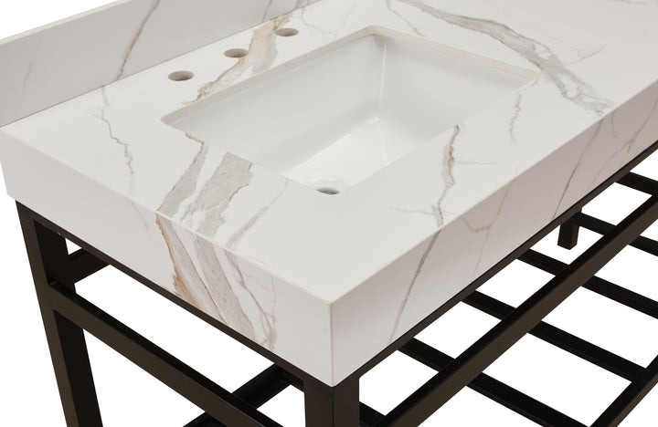 Made with engineered marble stone, the Marseille bathroom vanity countertop in a Calacatta White Apron finish offers a luxurious experience to any bathroom vanity space. With an impressive thickness of 3.9 inches, this unique top can be styled with your classic freestanding vanity or creatively mounted on the wall for a modern look. With a beautifully designed engineered top, this elegant piece accentuates its smooth and effortless feel without compromising its durability.