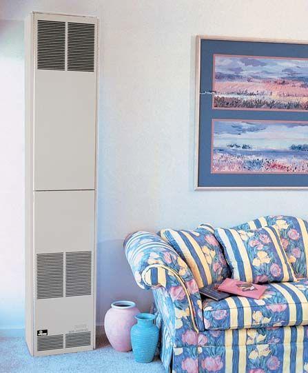 These Direct-Vent Counterflow Wall Furnaces may be recessed between standard wall studs and can be installed on an outside wall. Provides total comfort for a fraction of the cost of electric heat. Matchless pushbutton piezo ignition for manual operation; also works with optional thermostats or other remote controls. Front panels remove for cleaning and servicing. Counterflow design circulates warm air at floor level.