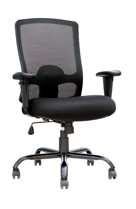 The Big and Tall High Capacity Task Chair by Eurotech is built to hold basically any user. The chair offers tilt tension control, tilt lock, swivel-tilt, seat height adjustment, arm height adjustment and a 350 lb. weight capacity. The chair comes in a black fabric seat with a black mesh back. The arms of this chair come in black, while the five-star base comes in a polished aluminum finish.