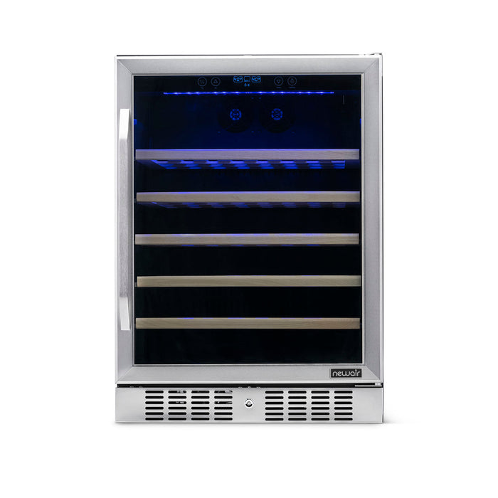 Newair 24" Built-In 52 Bottle Compressor Wine Fridge in Stainless Steel with Premium Beech Wood Shelves AWR-520SB