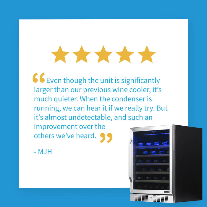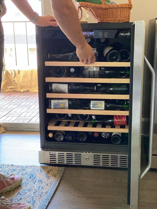 Newair 24" Built-In 52 Bottle Compressor Wine Fridge in Stainless Steel with Premium Beech Wood Shelves