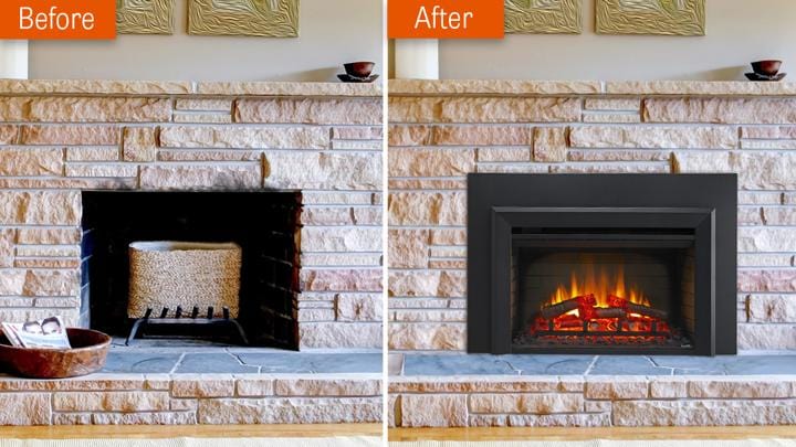 • Install into a Wood Fireplace with a Surround Kit or any Framed Opening with Self-Trimming Design