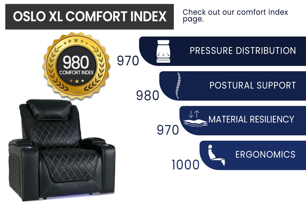 At Valencia Theater Seating, we want everyone to be able to experience pure comfort. That is why we have developed our Oslo XL model, which provides more space, so you can experience more wonderful movie experiences. The Oslo XL combines all the best features of the Oslo with increased seating space and weight capacity. You will be able to have more seating space so that you can have the ultimate movie experience.